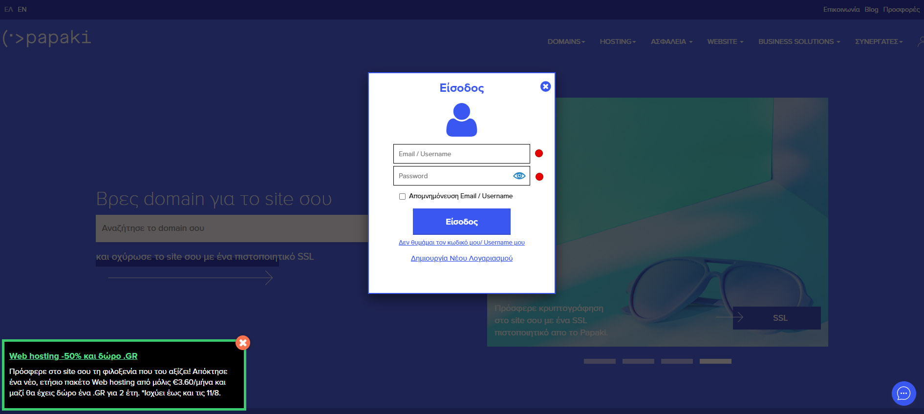 Θα σας ζητηθεί εκ νέου ο κωδικός σας στην Papaki και στην συνέχεια θα αποσταλεί ο κωδικός εξουσιοδότησης στο email που έχει καταχωρηθεί ως email ιδιοκτήτη στο όνομα χώρου.